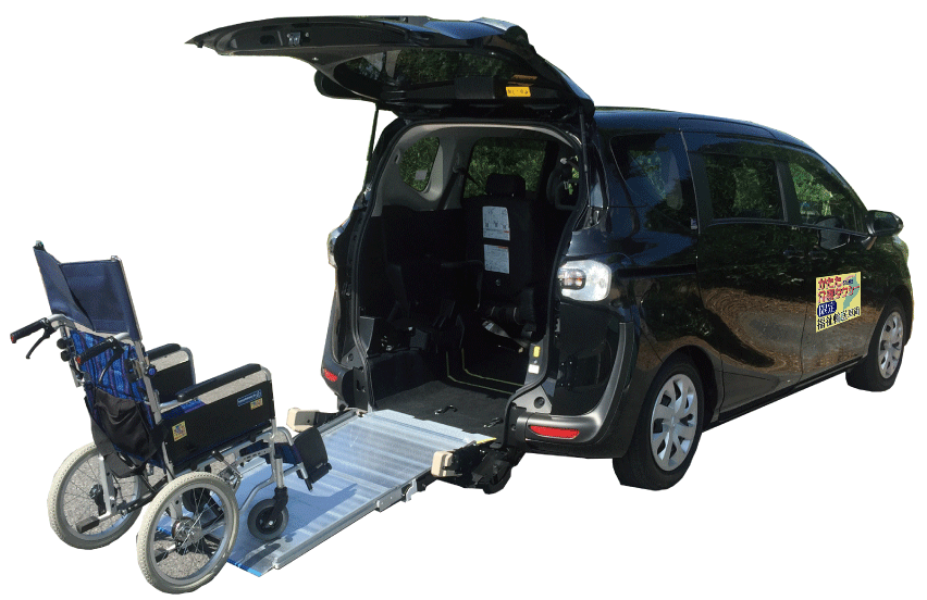 □車いすに乗ったまま乗り降り自由。(スロープ付きです。)